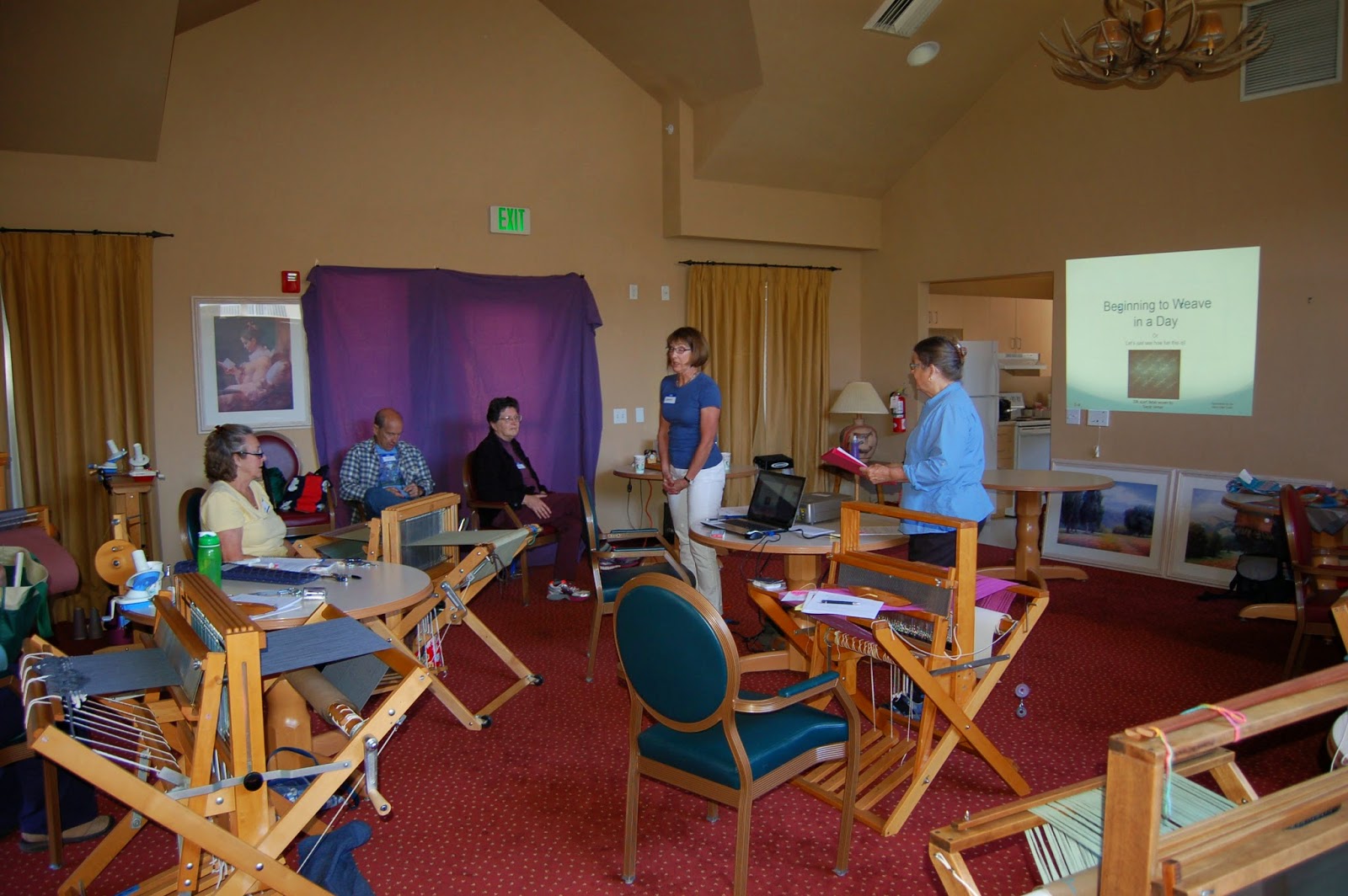 Suzanne welcomed our seven students to the Second Annual Learn to Weave class. We are fortunate to have meeting space available to us, free of charge thanks to generosity of Sky Peaks Retirement Community.